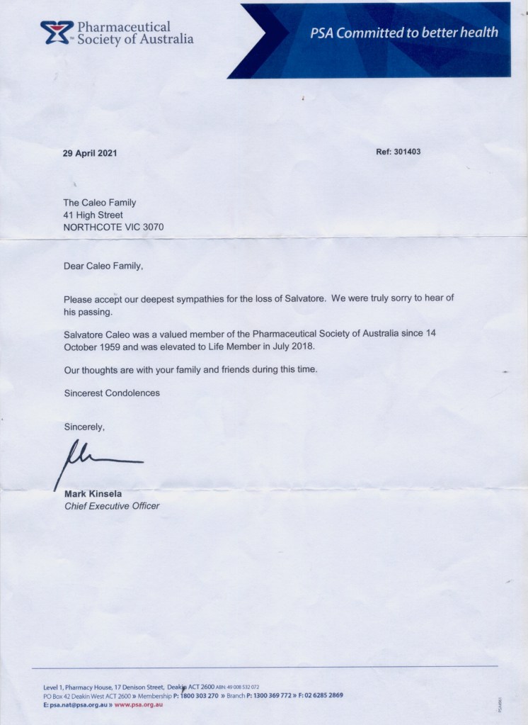MaryAnne wrote (or did you ring them, mum?) to the PSA to ask them to please stop sending us Salv’s Australian Pharmacist magazines. And, bless ’em, the CEO, or the CEO’s right hand person, wrote right back. See below.