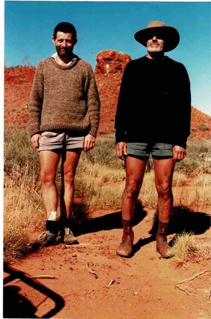 In this shot, a couple of happy fathers: Lawry Twining and Salvatore Caleo. Somewhere, probably, in the Northern Territory. LT says: “Possibly Mt Leisler near Kintore just near the WA border. Or it may be in the Gibson Desert just over the border in WA.”