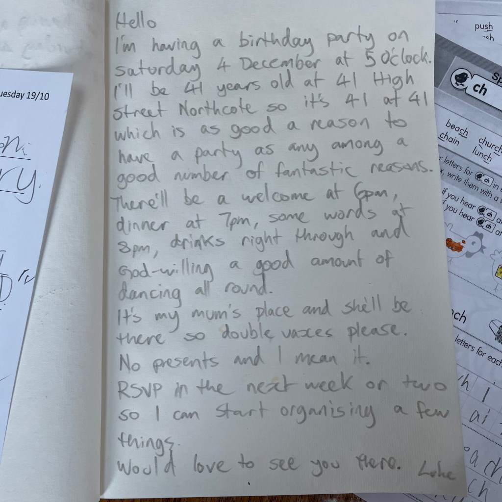 Luke wrote: Well that was pretty good fun. Thank you so much for coming along and making it so. Yes we ran out of food and the neighbour shut down the d-floor at 11pm and one of the tables caught fire but…. worth it I think? You’re the best, don’t go changing. Unless it’s out of a saggy lockdown tracksuit and into some great good times. xo Luke
