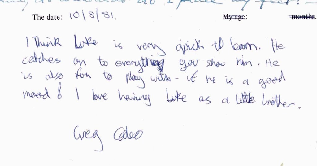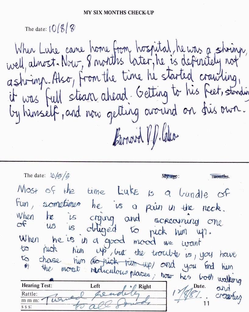 Luke’s ‘Gabriel Baby Centre’ book features quotes from Rudolf the Red Nosed Steiner alongside a smattering of some from his siblings.
